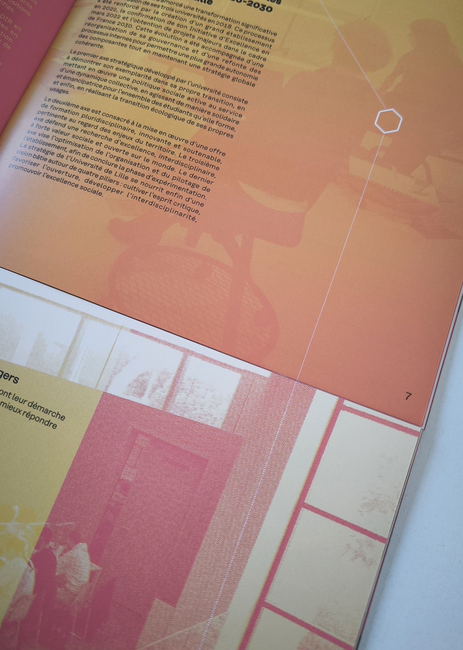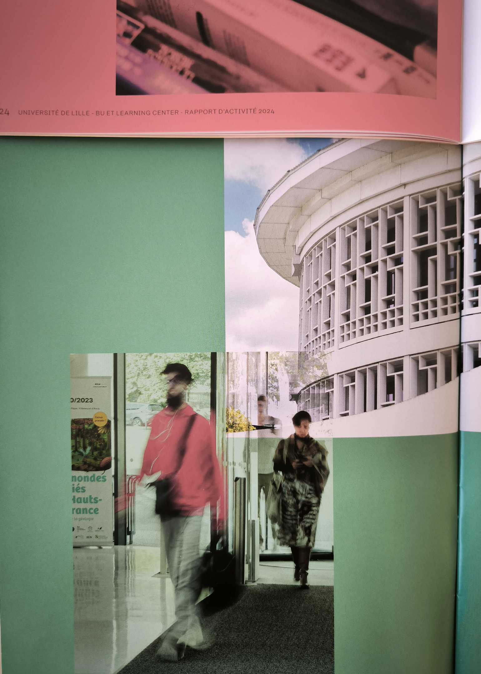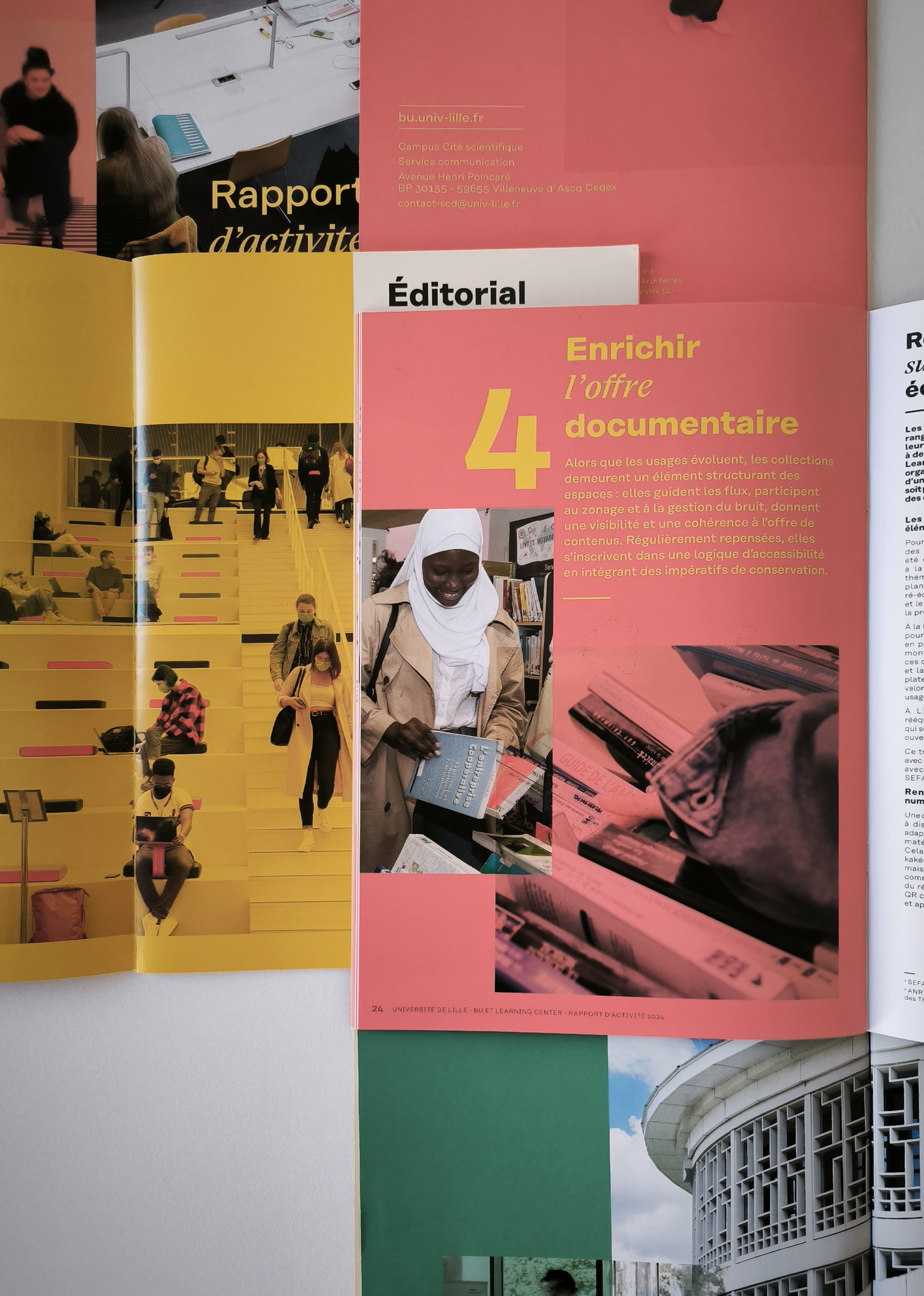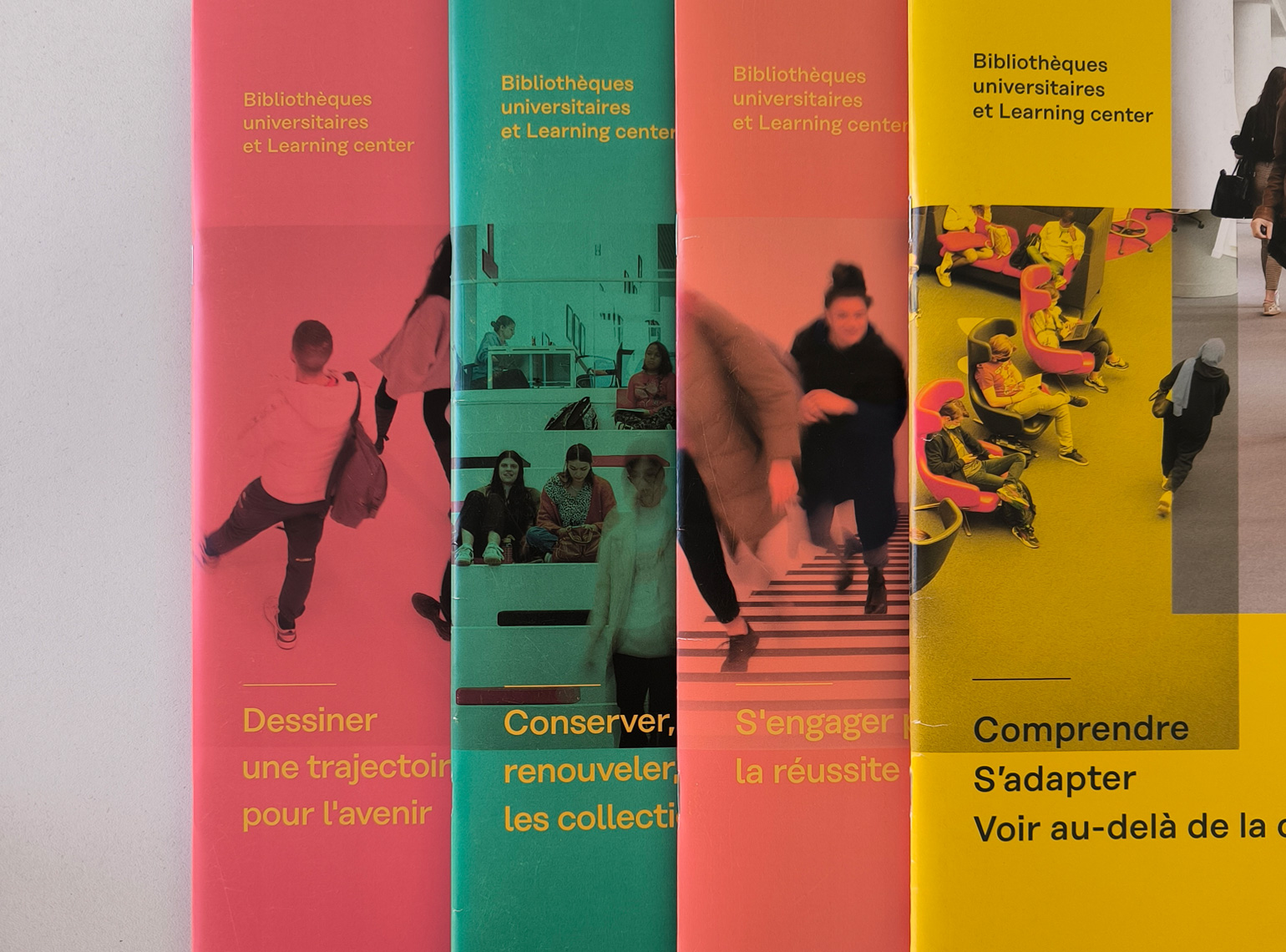 En 2021, suite à la nouvelle identité et charte graphique de l’université de Lille, nous avons mis en place un système d’édition illustrant un espace de transmission en constante évolution, les bibliothèques universitaires et Learning center.